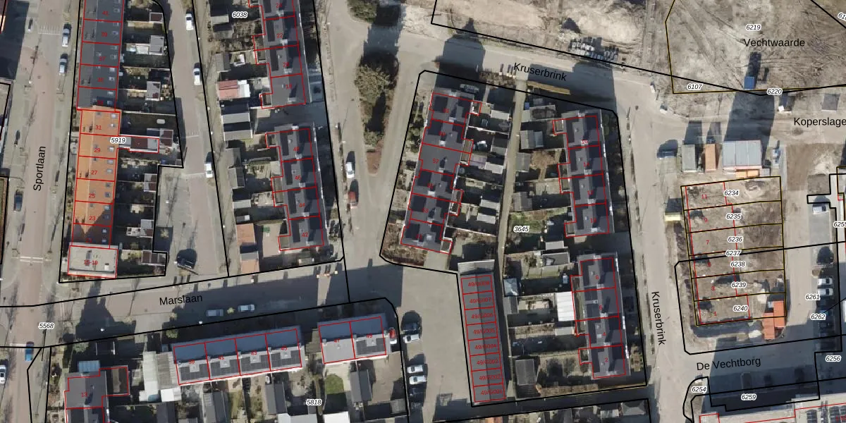 Het perceel waarop Marslaan 53 staat heeft een oppervlakte van 3540 m². Dit is een zeer groot perceel. De perceeloppervlakte wordt geregistreerd door het Kadaster. Gedetailleerde informatie over de maten van dit perceel kunt u vinden in het rapport Kadastrale kaart met maatvoering van Marslaan 53.