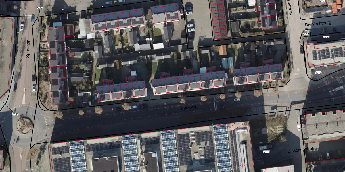 Parkweg 12 is gelegen op kadastraal perceel HDB02A5818. Deze kadastrale aanduiding is uniek en wordt gebruikt door het Kadaster om eigendomsrechten en andere zakelijke rechten vast te leggen. Het perceel maakt onderdeel uit van de kadastrale gemeente Stad-Hardenberg.