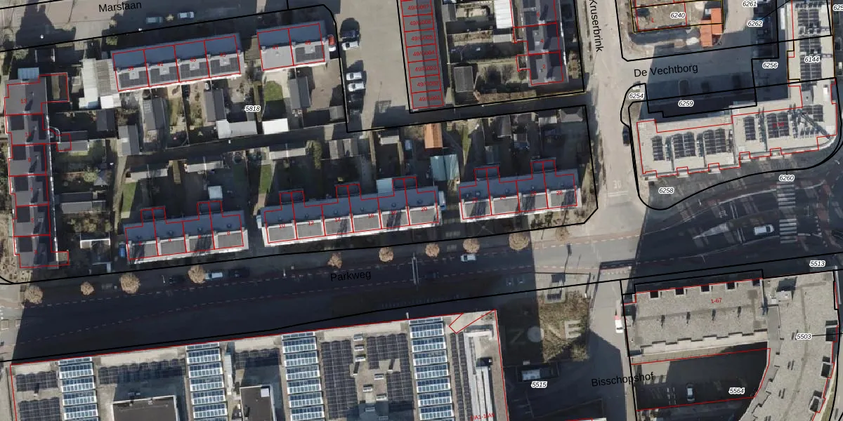 Parkweg 20 is gelegen op kadastraal perceel HDB02A5818. Deze kadastrale aanduiding is uniek en wordt gebruikt door het Kadaster om eigendomsrechten en andere zakelijke rechten vast te leggen. Het perceel maakt onderdeel uit van de kadastrale gemeente Stad-Hardenberg.