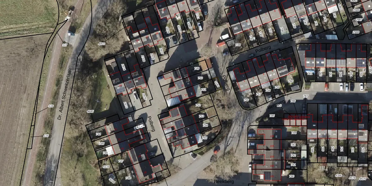Gebruik de zoekbalk of klik op een perceel voor informatie over de adressen binnen dit perceel.