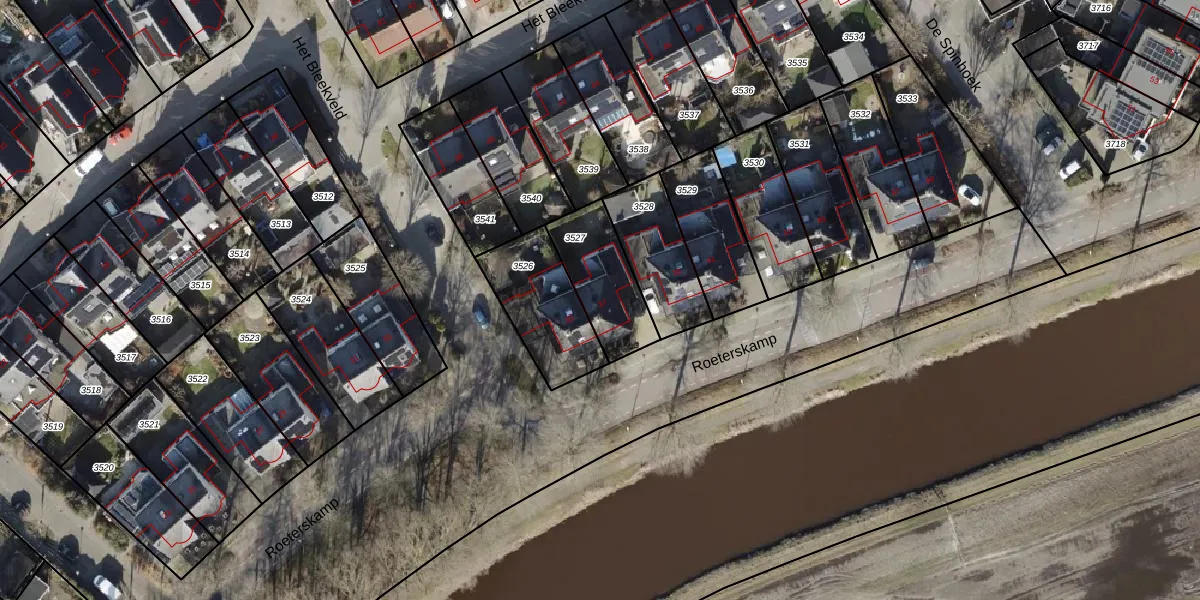 Gebruik de zoekbalk of klik op een perceel voor informatie over de adressen binnen dit perceel.