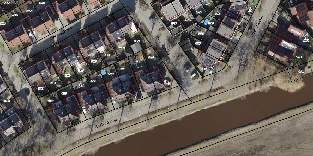 Gebruik de zoekbalk of klik op een perceel voor informatie over de adressen binnen dit perceel.