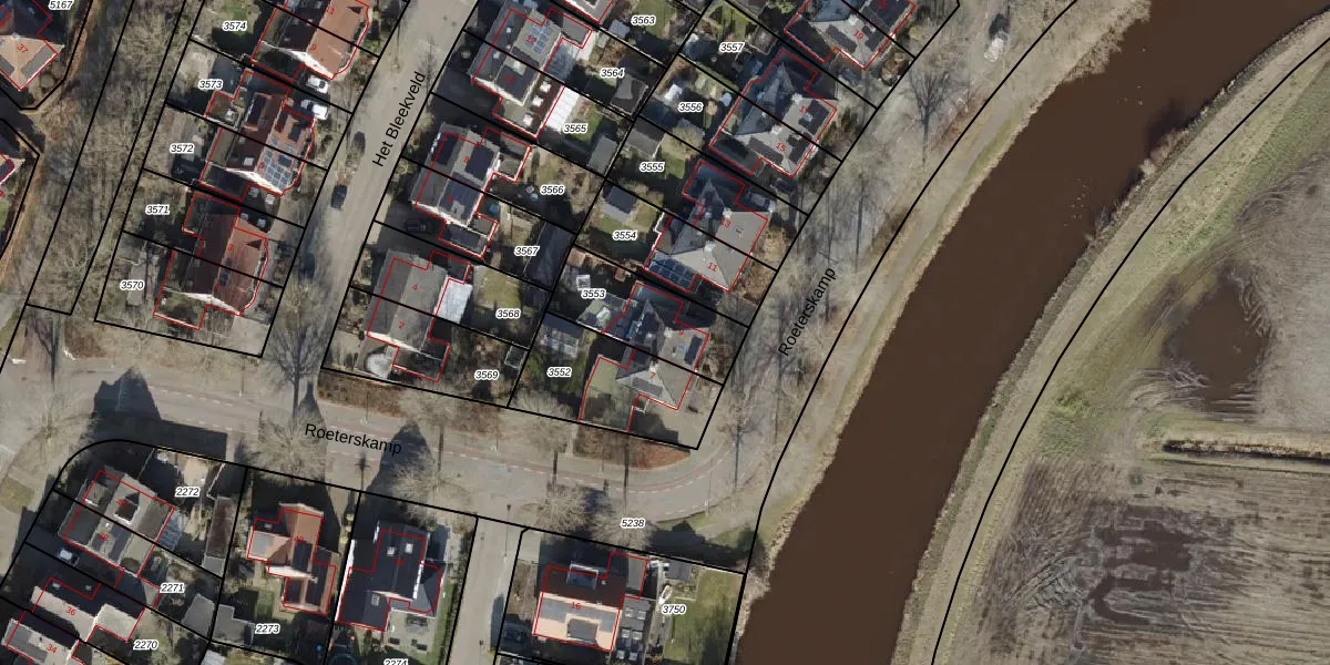 Gebruik de zoekbalk of klik op een perceel voor informatie over de adressen binnen dit perceel.