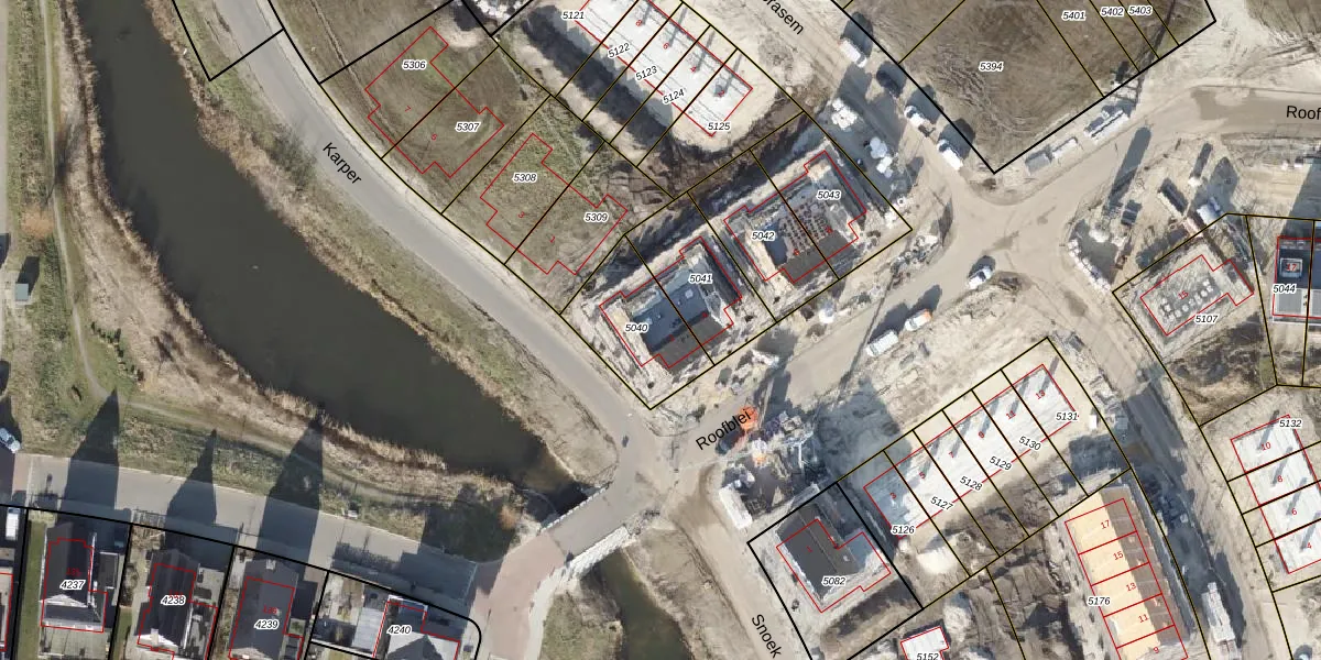 Gebruik de zoekbalk of klik op een perceel voor informatie over de adressen binnen dit perceel.