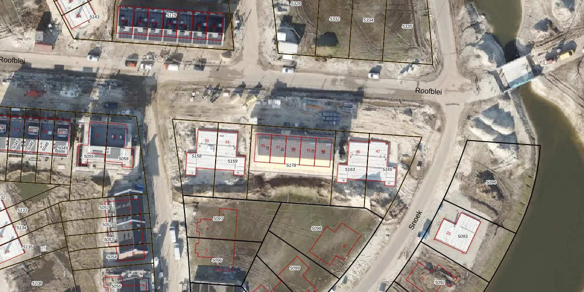 Het perceel waarop Roofblei 39 staat heeft een oppervlakte van 741 m². Dit is een groot perceel. De perceeloppervlakte wordt geregistreerd door het Kadaster. Gedetailleerde informatie over de maten van dit perceel kunt u vinden in het rapport Kadastrale kaart met maatvoering van Roofblei 39.