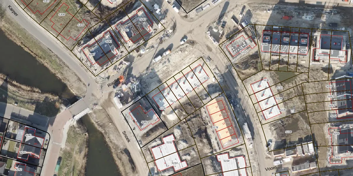Gebruik de zoekbalk of klik op een perceel voor informatie over de adressen binnen dit perceel.