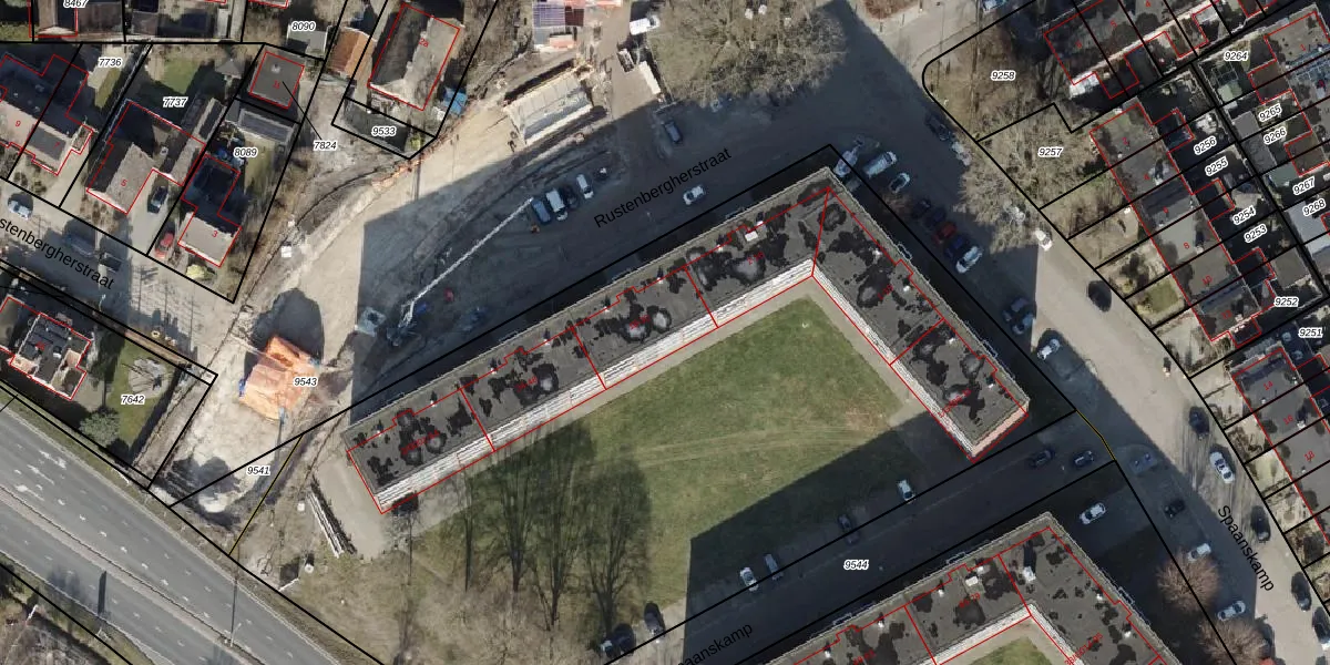 Het perceel waarop Rustenbergherstraat 24 staat heeft een oppervlakte van 1,4 ha. Dit is een zeer groot perceel. De perceeloppervlakte wordt geregistreerd door het Kadaster. Gedetailleerde informatie over de maten van dit perceel kunt u vinden in het rapport Kadastrale kaart met maatvoering van Rustenbergherstraat 24.