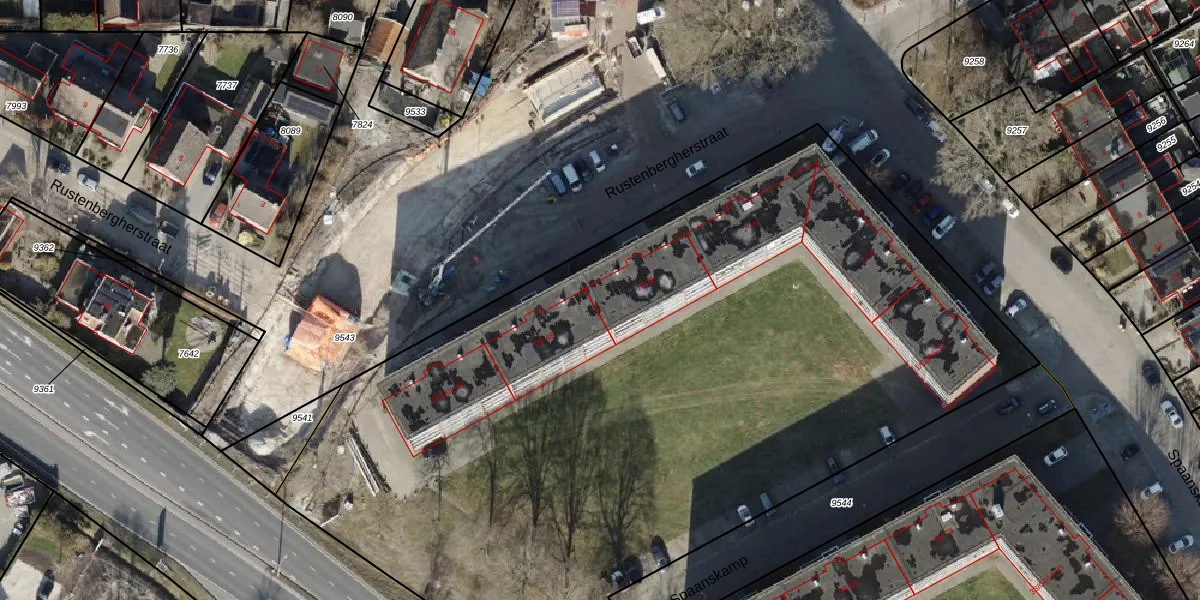 Het perceel waarop Rustenbergherstraat 30 staat heeft een oppervlakte van 1,4 ha. Dit is een zeer groot perceel. De perceeloppervlakte wordt geregistreerd door het Kadaster. Gedetailleerde informatie over de maten van dit perceel kunt u vinden in het rapport Kadastrale kaart met maatvoering van Rustenbergherstraat 30.
