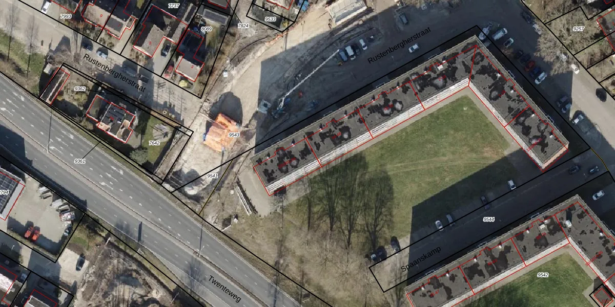 Het perceel waarop Rustenbergherstraat 50 staat heeft een oppervlakte van 1,4 ha. Dit is een zeer groot perceel. De perceeloppervlakte wordt geregistreerd door het Kadaster. Gedetailleerde informatie over de maten van dit perceel kunt u vinden in het rapport Kadastrale kaart met maatvoering van Rustenbergherstraat 50.
