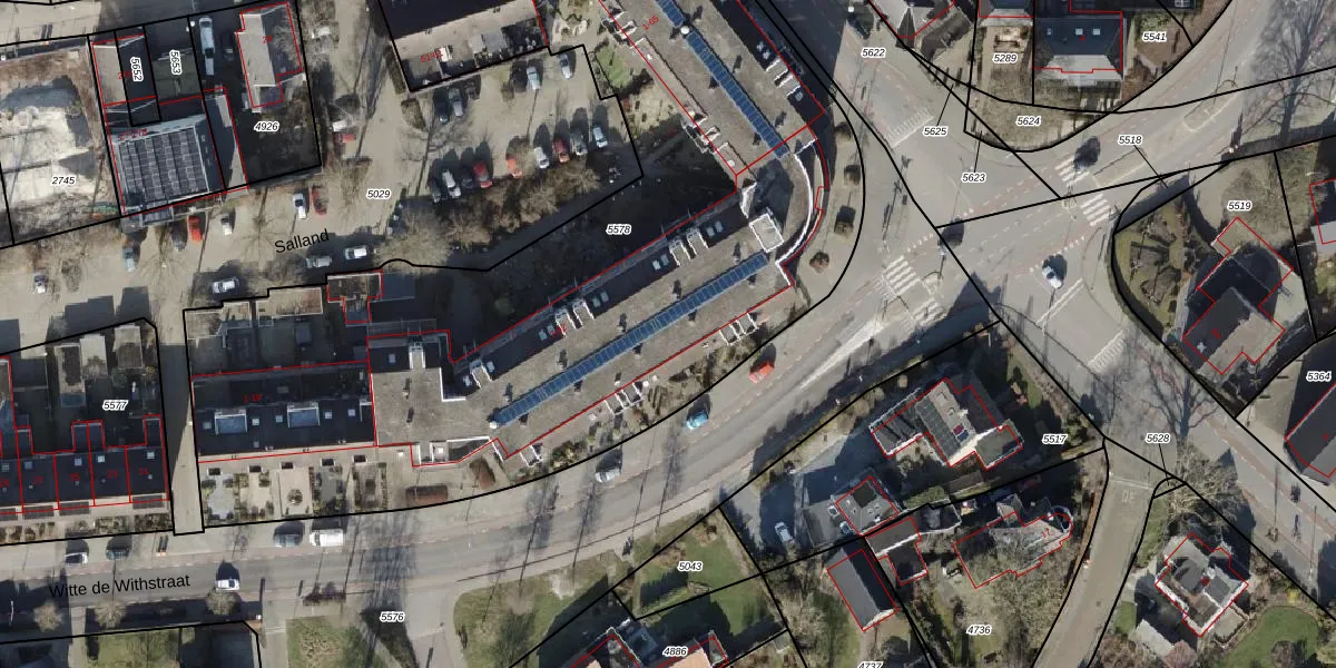Het perceel waarop Salland 18 staat heeft een oppervlakte van 4875 m². Dit is een zeer groot perceel. De perceeloppervlakte wordt geregistreerd door het Kadaster. Gedetailleerde informatie over de maten van dit perceel kunt u vinden in het rapport Kadastrale kaart met maatvoering van Salland 18.