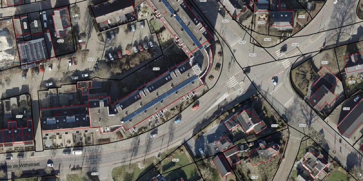Het perceel waarop Salland 22 staat heeft een oppervlakte van 4875 m². Dit is een zeer groot perceel. De perceeloppervlakte wordt geregistreerd door het Kadaster. Gedetailleerde informatie over de maten van dit perceel kunt u vinden in het rapport Kadastrale kaart met maatvoering van Salland 22.