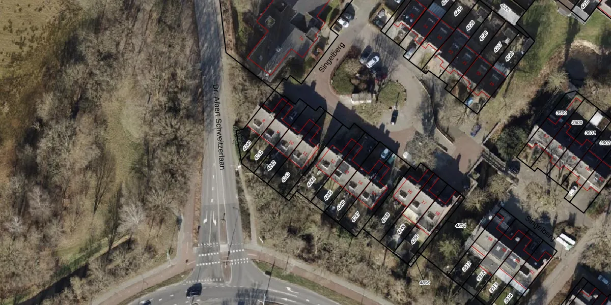 Gebruik de zoekbalk of klik op een perceel voor informatie over de adressen binnen dit perceel.