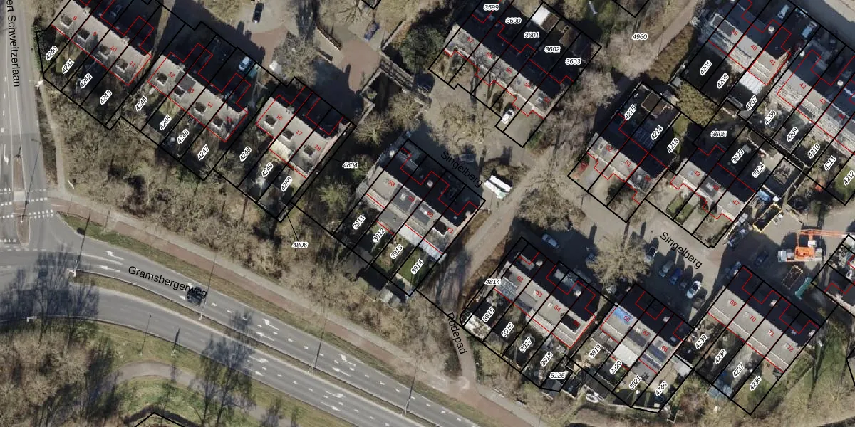 Het perceel waarop Singelberg 60 staat heeft een oppervlakte van 164 m². Dit is een middelgroot perceel. De perceeloppervlakte wordt geregistreerd door het Kadaster. Gedetailleerde informatie over de maten van dit perceel kunt u vinden in het rapport Kadastrale kaart met maatvoering van Singelberg 60.