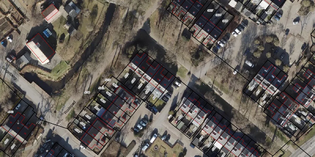 Gebruik de zoekbalk of klik op een perceel voor informatie over de adressen binnen dit perceel.