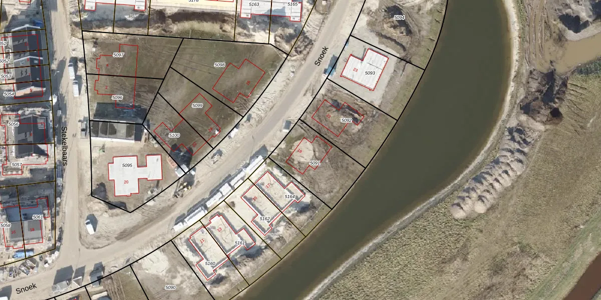 Het perceel waarop Snoek 19 staat heeft een oppervlakte van 468 m². Dit is een groot perceel. De perceeloppervlakte wordt geregistreerd door het Kadaster. Gedetailleerde informatie over de maten van dit perceel kunt u vinden in het rapport Kadastrale kaart met maatvoering van Snoek 19.