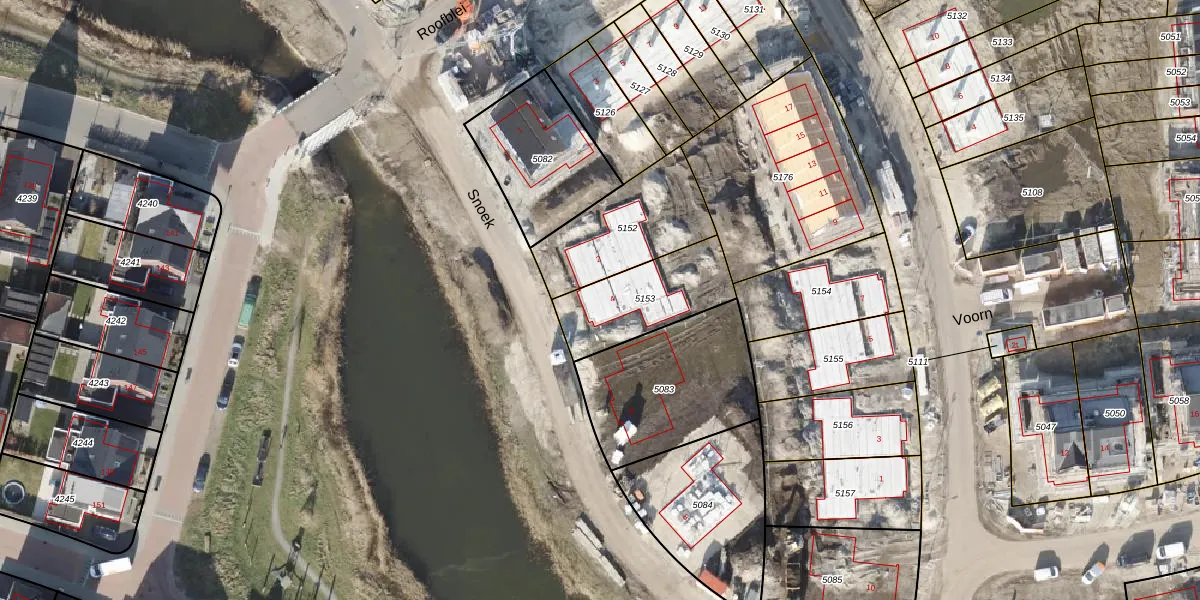 Het perceel waarop Snoek 4 staat heeft een oppervlakte van 326 m². Dit is een groot perceel. De perceeloppervlakte wordt geregistreerd door het Kadaster. Gedetailleerde informatie over de maten van dit perceel kunt u vinden in het rapport Kadastrale kaart met maatvoering van Snoek 4.