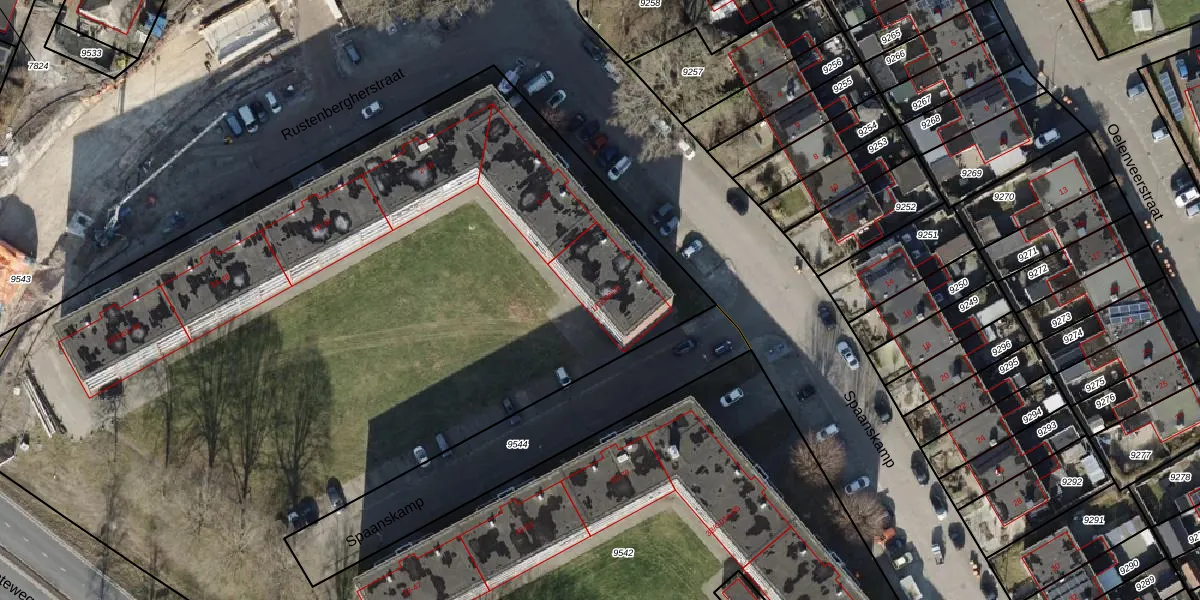 Het perceel waarop Spaanskamp 31 staat heeft een oppervlakte van 1,4 ha. Dit is een zeer groot perceel. De perceeloppervlakte wordt geregistreerd door het Kadaster. Gedetailleerde informatie over de maten van dit perceel kunt u vinden in het rapport Kadastrale kaart met maatvoering van Spaanskamp 31.