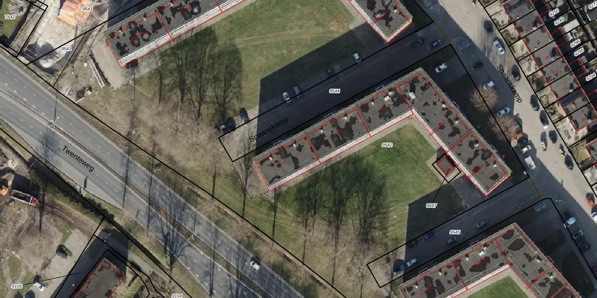 Het perceel waarop Spaanskamp 45 staat heeft een oppervlakte van 1,4 ha. Dit is een zeer groot perceel. De perceeloppervlakte wordt geregistreerd door het Kadaster. Gedetailleerde informatie over de maten van dit perceel kunt u vinden in het rapport Kadastrale kaart met maatvoering van Spaanskamp 45.