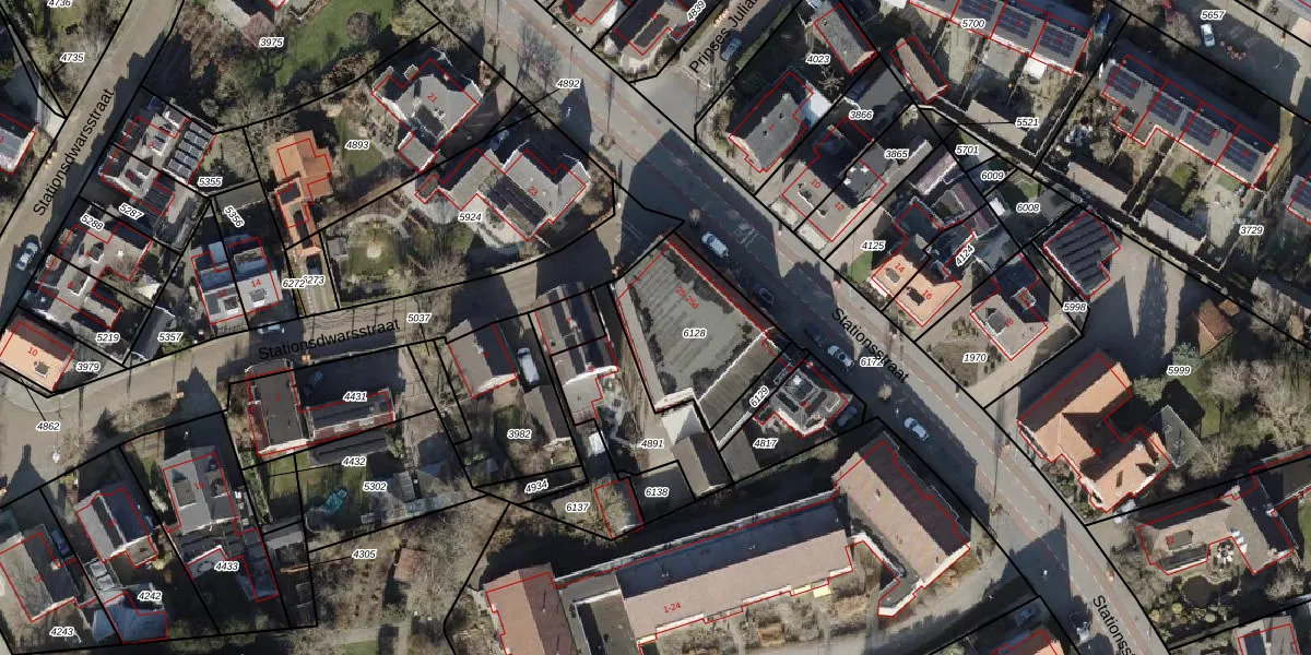 Het perceel waarop Stationsstraat 25-b staat heeft een oppervlakte van 477 m². Dit is een groot perceel. De perceeloppervlakte wordt geregistreerd door het Kadaster. Gedetailleerde informatie over de maten van dit perceel kunt u vinden in het rapport Kadastrale kaart met maatvoering van Stationsstraat 25-b.
