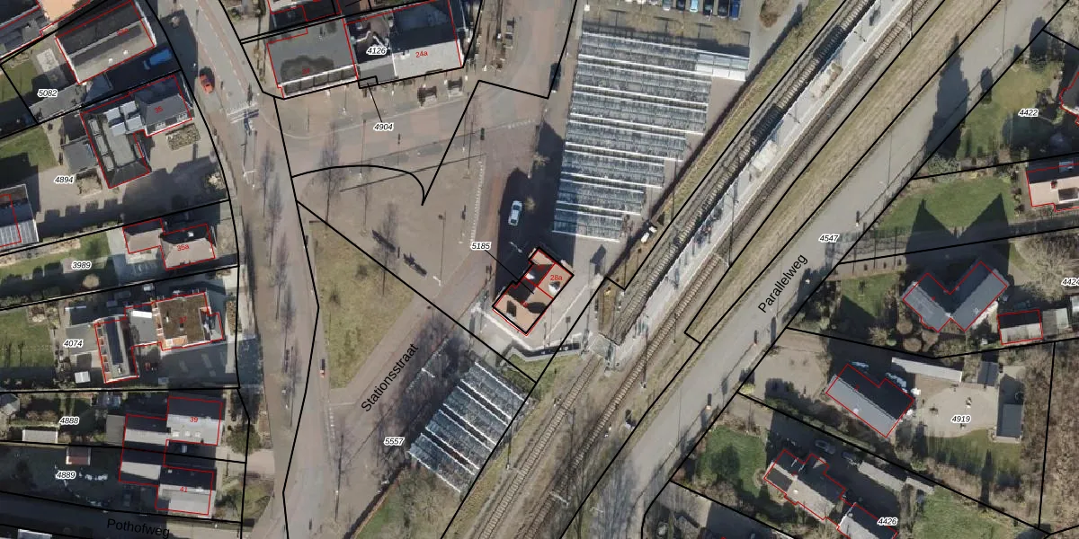 Het perceel waarop Stationsstraat 26 staat heeft een oppervlakte van 108 m². Dit is een middelgroot perceel. De perceeloppervlakte wordt geregistreerd door het Kadaster. Gedetailleerde informatie over de maten van dit perceel kunt u vinden in het rapport Kadastrale kaart met maatvoering van Stationsstraat 26.