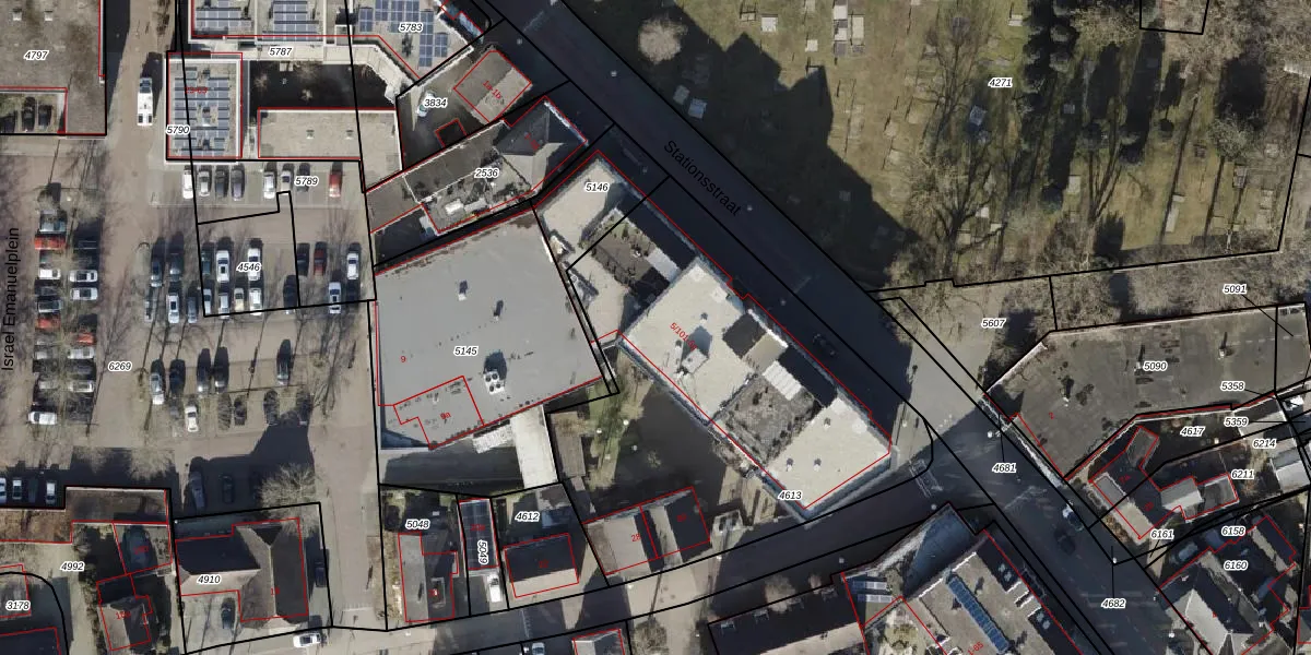 Stationsstraat 5-106 is gelegen op kadastraal perceel HDB02A4613. Deze kadastrale aanduiding is uniek en wordt gebruikt door het Kadaster om eigendomsrechten en andere zakelijke rechten vast te leggen. Het perceel maakt onderdeel uit van de kadastrale gemeente Stad-Hardenberg.