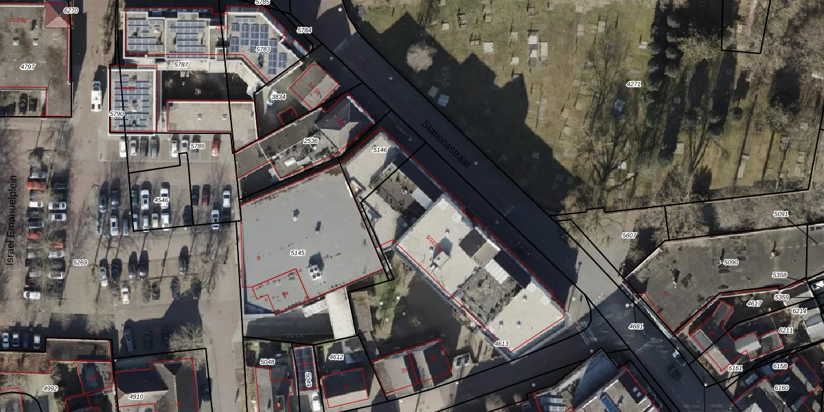 Het perceel waarop Stationsstraat 5-302 staat heeft een oppervlakte van 2107 m². Dit is een zeer groot perceel. De perceeloppervlakte wordt geregistreerd door het Kadaster. Gedetailleerde informatie over de maten van dit perceel kunt u vinden in het rapport Kadastrale kaart met maatvoering van Stationsstraat 5-302.