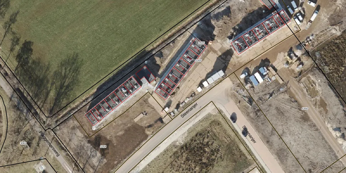 Het perceel waarop Steenanjer 32 staat heeft een oppervlakte van 3876 m². Dit is een zeer groot perceel. De perceeloppervlakte wordt geregistreerd door het Kadaster. Gedetailleerde informatie over de maten van dit perceel kunt u vinden in het rapport Kadastrale kaart met maatvoering van Steenanjer 32.