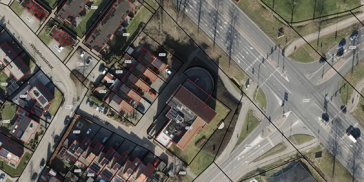 Het perceel waarop Ulfershof 13 staat heeft een oppervlakte van 1297 m². Dit is een zeer groot perceel. De perceeloppervlakte wordt geregistreerd door het Kadaster. Gedetailleerde informatie over de maten van dit perceel kunt u vinden in het rapport Kadastrale kaart met maatvoering van Ulfershof 13.
