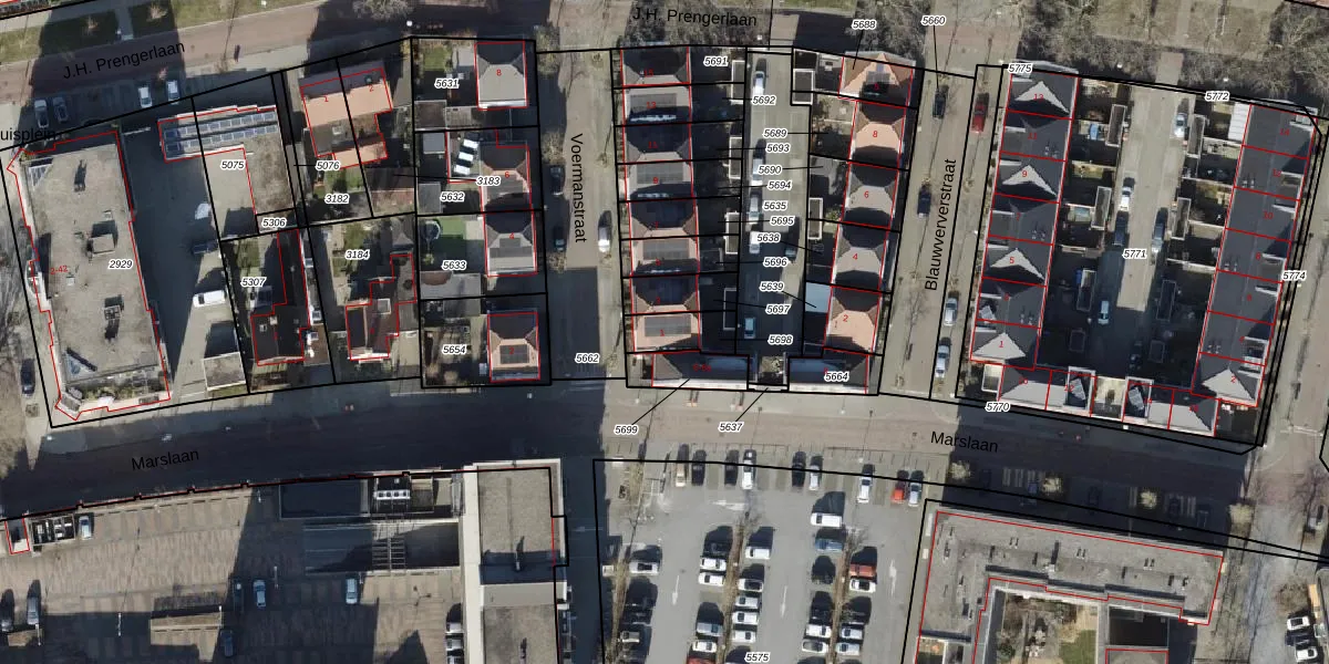 Het perceel waarop Voermanstraat 1 staat heeft een oppervlakte van 100 m². Dit is een middelgroot perceel. De perceeloppervlakte wordt geregistreerd door het Kadaster. Gedetailleerde informatie over de maten van dit perceel kunt u vinden in het rapport Kadastrale kaart met maatvoering van Voermanstraat 1.