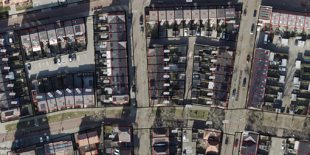 Gebruik de zoekbalk of klik op een perceel voor informatie over de adressen binnen dit perceel.