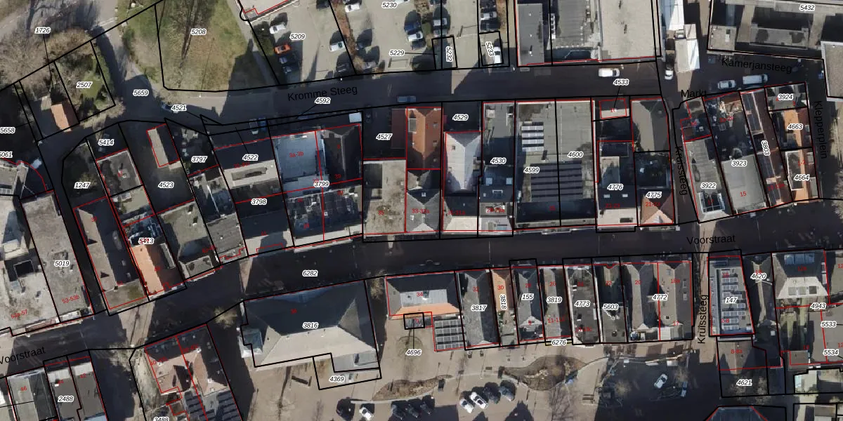 Het perceel waarop Voorstraat 33 staat heeft een oppervlakte van 612 m². Dit is een groot perceel. De perceeloppervlakte wordt geregistreerd door het Kadaster. Gedetailleerde informatie over de maten van dit perceel kunt u vinden in het rapport Kadastrale kaart met maatvoering van Voorstraat 33.
