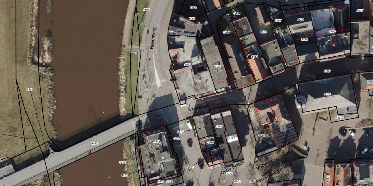 Het perceel waarop Voorstraat 57 staat heeft een oppervlakte van 647 m². Dit is een groot perceel. De perceeloppervlakte wordt geregistreerd door het Kadaster. Gedetailleerde informatie over de maten van dit perceel kunt u vinden in het rapport Kadastrale kaart met maatvoering van Voorstraat 57.