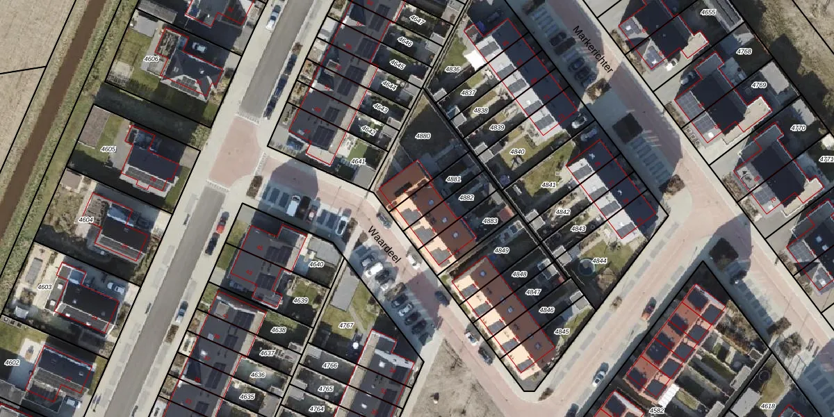 Het perceel waarop Waardeel 4 staat heeft een oppervlakte van 141 m². Dit is een middelgroot perceel. De perceeloppervlakte wordt geregistreerd door het Kadaster. Gedetailleerde informatie over de maten van dit perceel kunt u vinden in het rapport Kadastrale kaart met maatvoering van Waardeel 4.
