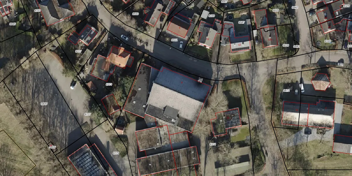 Weidebuurt 9 is gelegen op kadastraal perceel HDB01B8774. Deze kadastrale aanduiding is uniek en wordt gebruikt door het Kadaster om eigendomsrechten en andere zakelijke rechten vast te leggen. Het perceel maakt onderdeel uit van de kadastrale gemeente Ambt-Hardenberg.