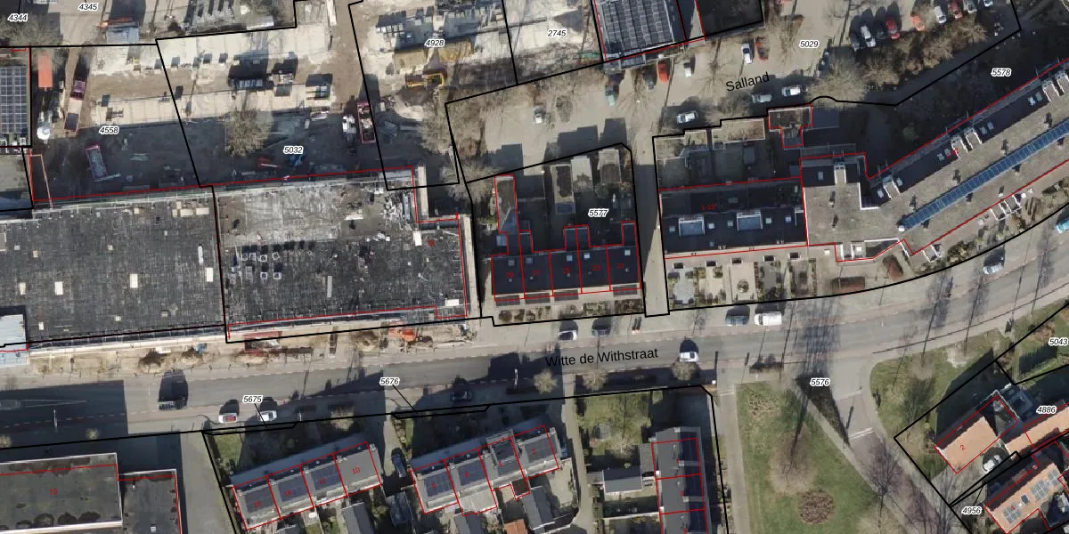 Het perceel waarop Witte de Withstraat 27 staat heeft een oppervlakte van 907 m². Dit is een groot perceel. De perceeloppervlakte wordt geregistreerd door het Kadaster. Gedetailleerde informatie over de maten van dit perceel kunt u vinden in het rapport Kadastrale kaart met maatvoering van Witte de Withstraat 27.