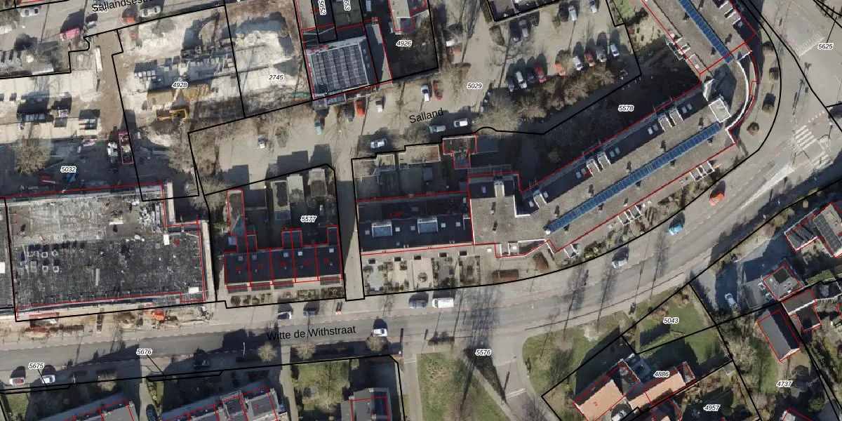 Het perceel waarop Witte de Withstraat 9 staat heeft een oppervlakte van 4875 m². Dit is een zeer groot perceel. De perceeloppervlakte wordt geregistreerd door het Kadaster. Gedetailleerde informatie over de maten van dit perceel kunt u vinden in het rapport Kadastrale kaart met maatvoering van Witte de Withstraat 9.