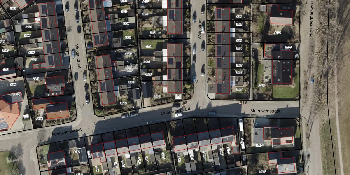 Gebruik de zoekbalk of klik op een perceel voor informatie over de adressen binnen dit perceel.