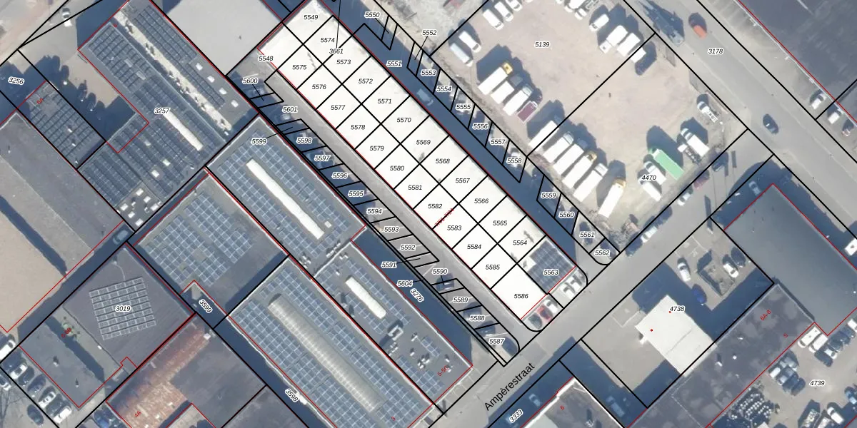 Het perceel waarop Ampèrestraat 7-05 staat heeft een oppervlakte van 57 m². Dit is een klein perceel. De perceeloppervlakte wordt geregistreerd door het Kadaster. Gedetailleerde informatie over de maten van dit perceel kunt u vinden in het rapport Kadastrale kaart met maatvoering van Ampèrestraat 7-05.