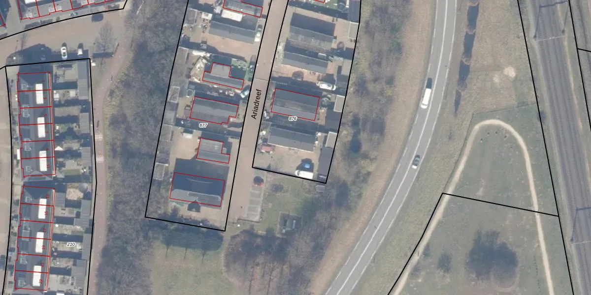 Het perceel waarop Ariadreef 11 staat heeft een oppervlakte van 2060 m². Dit is een zeer groot perceel. De perceeloppervlakte wordt geregistreerd door het Kadaster. Gedetailleerde informatie over de maten van dit perceel kunt u vinden in het rapport Kadastrale kaart met maatvoering van Ariadreef 11.