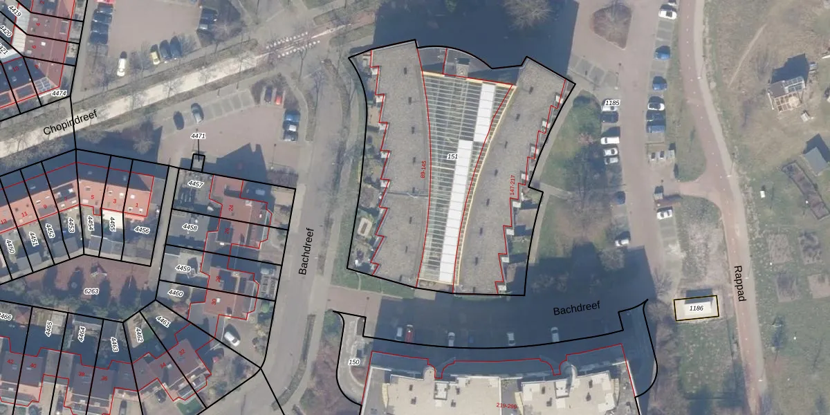 Het perceel waarop Bachdreef 131 staat heeft een oppervlakte van 2504 m². Dit is een zeer groot perceel. De perceeloppervlakte wordt geregistreerd door het Kadaster. Gedetailleerde informatie over de maten van dit perceel kunt u vinden in het rapport Kadastrale kaart met maatvoering van Bachdreef 131.