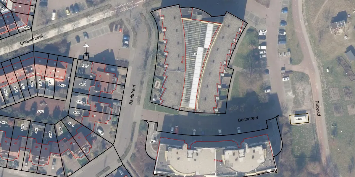 Het perceel waarop Bachdreef 133 staat heeft een oppervlakte van 2504 m². Dit is een zeer groot perceel. De perceeloppervlakte wordt geregistreerd door het Kadaster. Gedetailleerde informatie over de maten van dit perceel kunt u vinden in het rapport Kadastrale kaart met maatvoering van Bachdreef 133.
