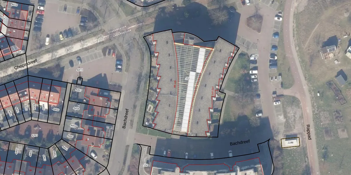 Het perceel waarop Bachdreef 145 staat heeft een oppervlakte van 2504 m². Dit is een zeer groot perceel. De perceeloppervlakte wordt geregistreerd door het Kadaster. Gedetailleerde informatie over de maten van dit perceel kunt u vinden in het rapport Kadastrale kaart met maatvoering van Bachdreef 145.