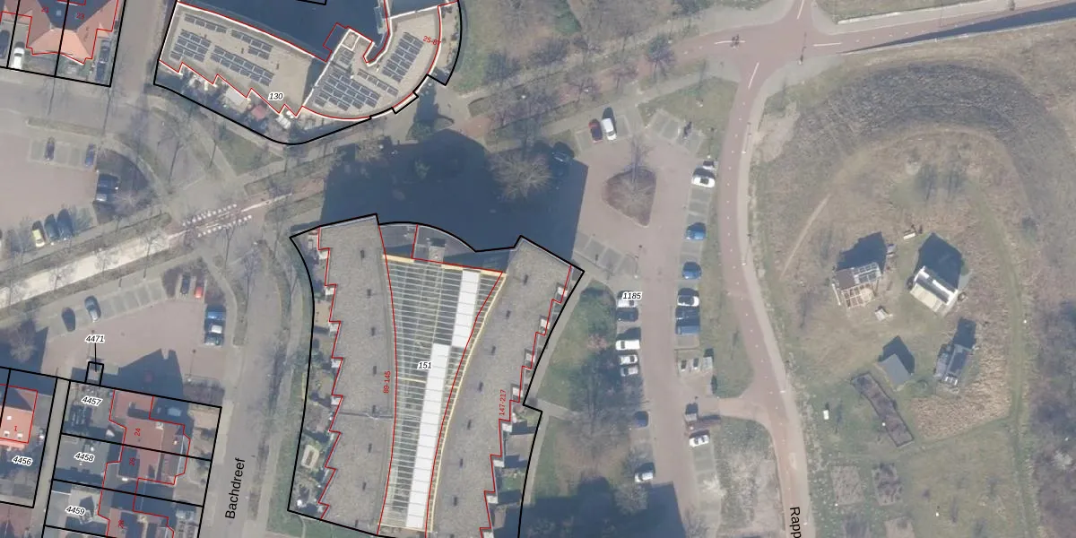 Het perceel waarop Bachdreef 171 staat heeft een oppervlakte van 2504 m². Dit is een zeer groot perceel. De perceeloppervlakte wordt geregistreerd door het Kadaster. Gedetailleerde informatie over de maten van dit perceel kunt u vinden in het rapport Kadastrale kaart met maatvoering van Bachdreef 171.