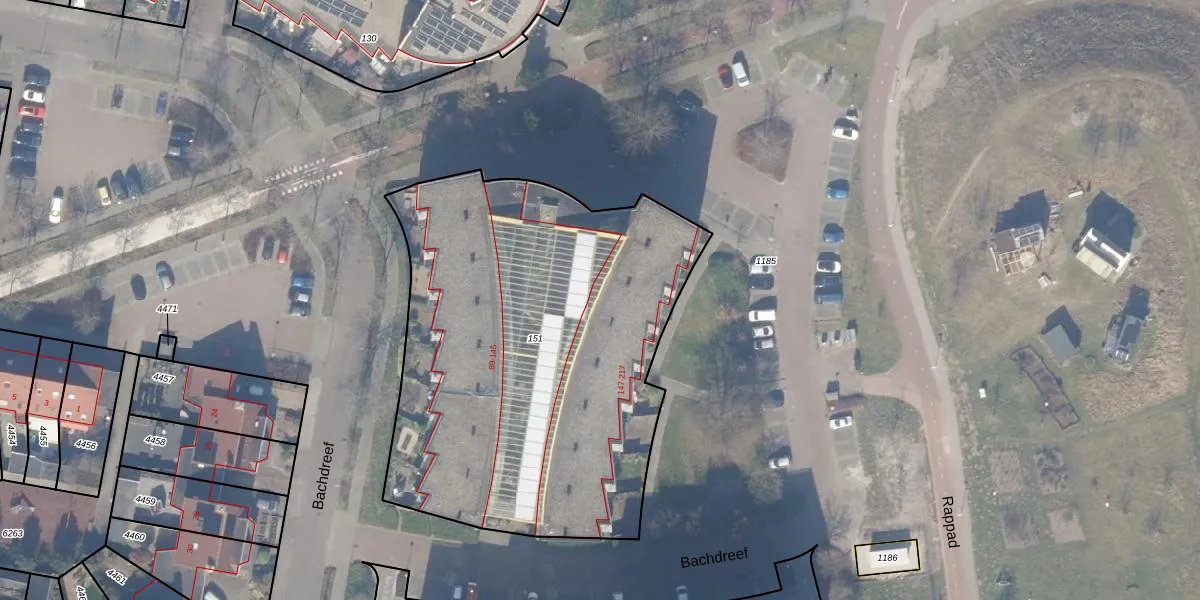 Het perceel waarop Bachdreef 207 staat heeft een oppervlakte van 2504 m². Dit is een zeer groot perceel. De perceeloppervlakte wordt geregistreerd door het Kadaster. Gedetailleerde informatie over de maten van dit perceel kunt u vinden in het rapport Kadastrale kaart met maatvoering van Bachdreef 207.