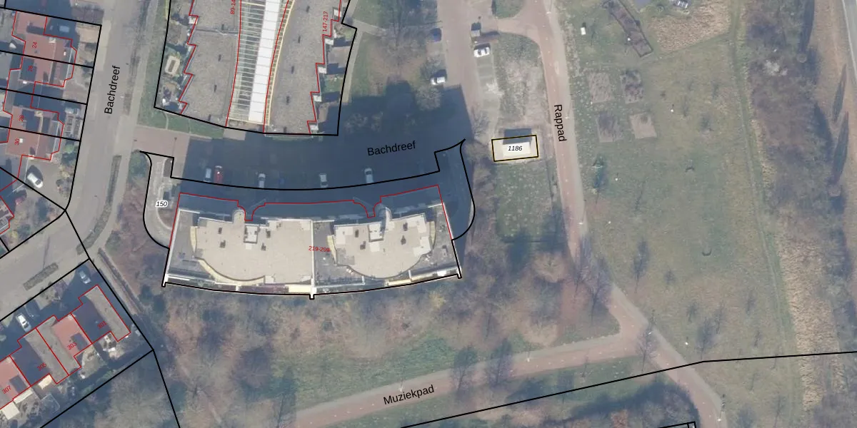 Het perceel waarop Bachdreef 255 staat heeft een oppervlakte van 1850 m². Dit is een zeer groot perceel. De perceeloppervlakte wordt geregistreerd door het Kadaster. Gedetailleerde informatie over de maten van dit perceel kunt u vinden in het rapport Kadastrale kaart met maatvoering van Bachdreef 255.