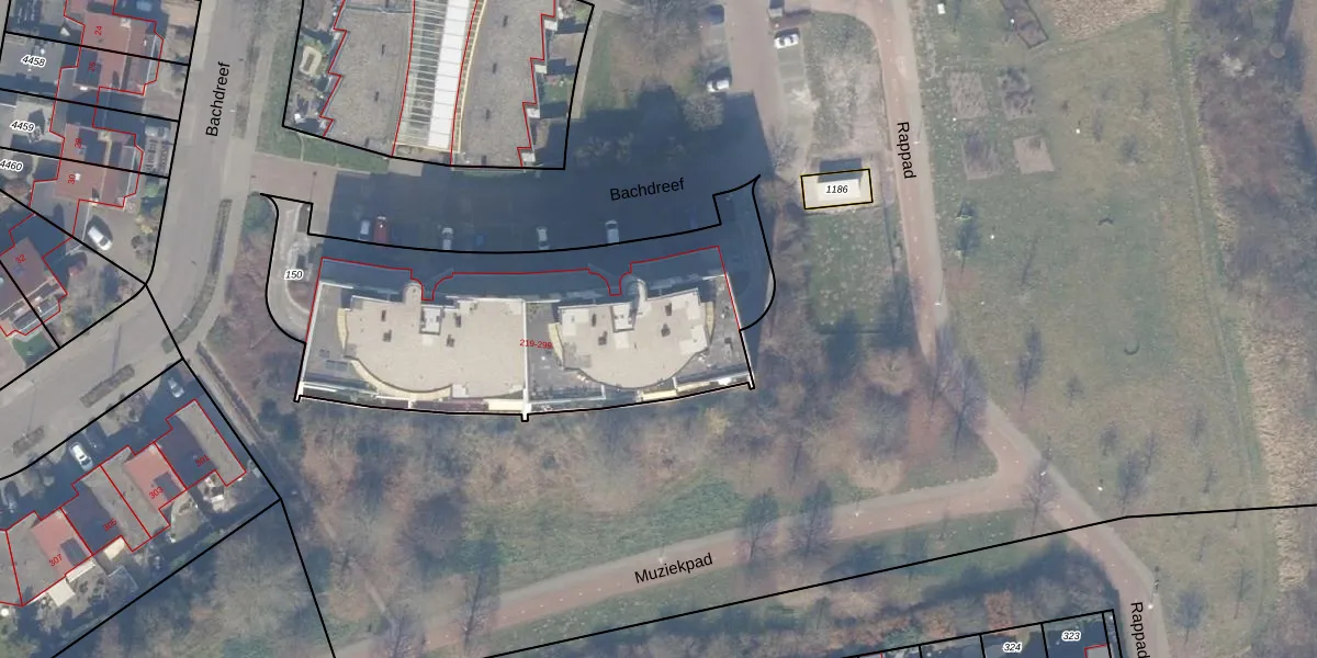Het perceel waarop Bachdreef 269 staat heeft een oppervlakte van 1850 m². Dit is een zeer groot perceel. De perceeloppervlakte wordt geregistreerd door het Kadaster. Gedetailleerde informatie over de maten van dit perceel kunt u vinden in het rapport Kadastrale kaart met maatvoering van Bachdreef 269.