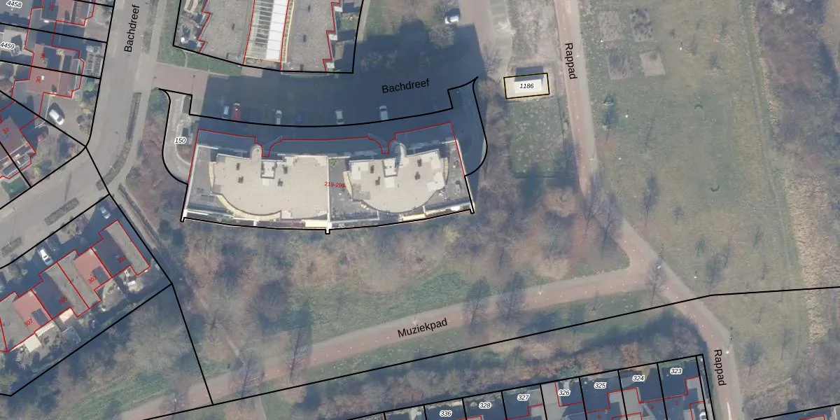 Het perceel waarop Bachdreef 299 staat heeft een oppervlakte van 1850 m². Dit is een zeer groot perceel. De perceeloppervlakte wordt geregistreerd door het Kadaster. Gedetailleerde informatie over de maten van dit perceel kunt u vinden in het rapport Kadastrale kaart met maatvoering van Bachdreef 299.