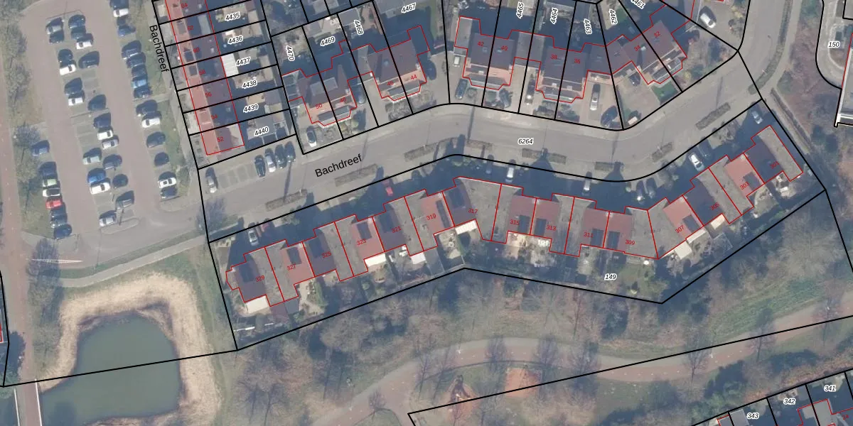 Bachdreef 319 is gelegen op kadastraal perceel HDW00K149. Deze kadastrale aanduiding is uniek en wordt gebruikt door het Kadaster om eigendomsrechten en andere zakelijke rechten vast te leggen. Het perceel maakt onderdeel uit van de kadastrale gemeente Harderwijk.