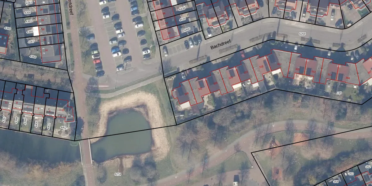 Het perceel waarop Bachdreef 329 staat heeft een oppervlakte van 3792 m². Dit is een zeer groot perceel. De perceeloppervlakte wordt geregistreerd door het Kadaster. Gedetailleerde informatie over de maten van dit perceel kunt u vinden in het rapport Kadastrale kaart met maatvoering van Bachdreef 329.