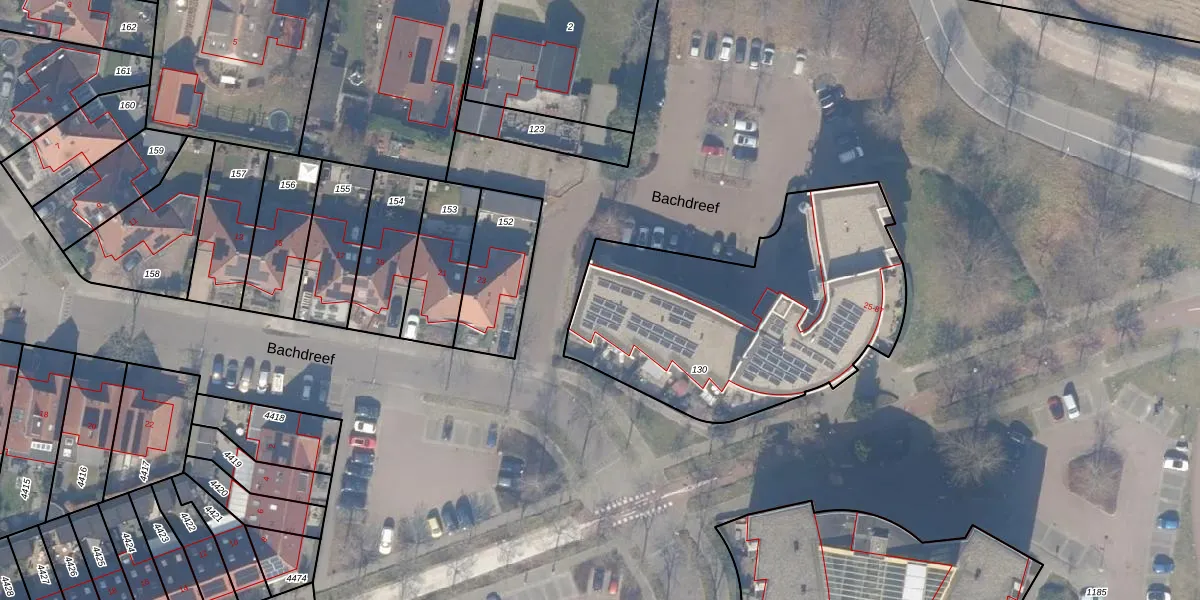 Het perceel waarop Bachdreef 37 staat heeft een oppervlakte van 1447 m². Dit is een zeer groot perceel. De perceeloppervlakte wordt geregistreerd door het Kadaster. Gedetailleerde informatie over de maten van dit perceel kunt u vinden in het rapport Kadastrale kaart met maatvoering van Bachdreef 37.